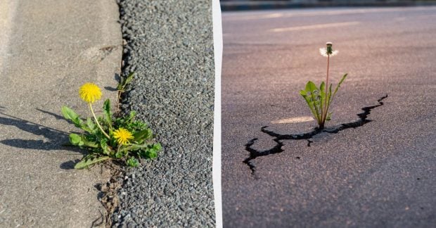 Асфальт разрушается еще быстрее: солнечное излучение и дождевые осадки негативно сказываются на его поверхности, а движение автомобилей создает дополнительные нагрузки. Часто такие покрытия просто латкают, не меняя их полностью, и это создает даже более слабые места. Эти несовершенства "прочных" материалов и служат отличной средой для одуванчиков.