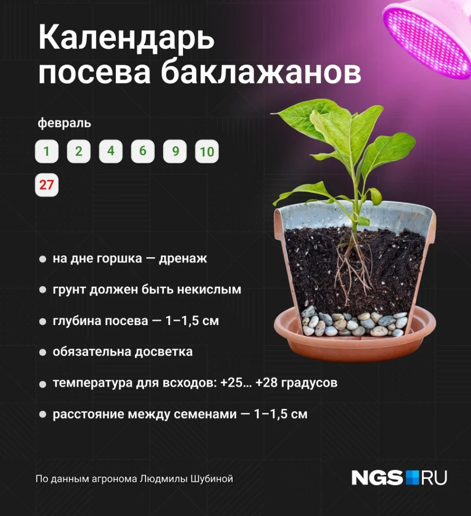 Оптимальные сроки посева баклажанов на рассаду в феврале