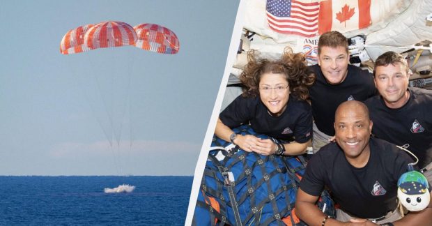 Спустя менее двух часов после приземления, капсула была закреплена, и из нее были извлечены астронавты: американцы Рид Уайзман (50 лет), Виктор Гловер (49 лет), Кристина Кох (47 лет) и канадец Джереми Хансен (50 лет). Военно-морской врач, осмотревший астронавтов на борту, подтвердил, что все они здоровы.