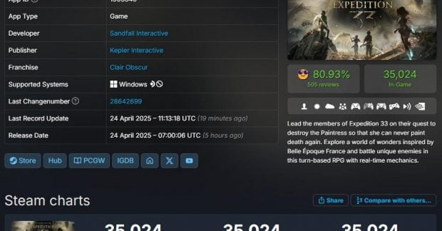 24 апреля состоялся релиз Clair Obscur: Expedition 33. Дебютная игра небольшой французской студии получила высокие оценки у критиков и сейчас занимает лидирующую позицию в рейтингах самых ожидаемых игр 2025 года по версии OpenCritic. Журналисты отмечают, что игра станет настоящим праздником для поклонников пошаговых сражений. В отзывах делается акцент на креативность и глубину проработки игры, а многими она сравнивается с Final Fantasy VII. Некоторые рецензенты даже называют Expedition 33 "классикой на подходе".