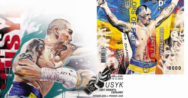 "Эта почти окончательная официальная марка 2024 года найдет своих признательных поклонников, так как она посвящена легенде украинского спорта, символу — Александру Усику, а также его предстоящему бою с Тайсоном Фьюри за титулы чемпиона мира по версиям WBC, WBA, WBO и IBO в супертяжелом весе, который состоится 21 декабря в Саудовской Аравии", — отметил генеральный директор "Укрпочты" Игорь Смелянский.