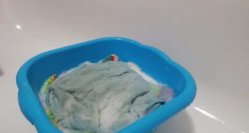 Второй этап включает приготовление специального раствора для замачивания. В теплой воде (40-45°C) растворяют рисовую воду (полученную после промывания риса), добавляют пищевую соду и несколько капель эфирного масла чайного дерева. Полотенца замачивают в этом растворе на 30-40 минут.